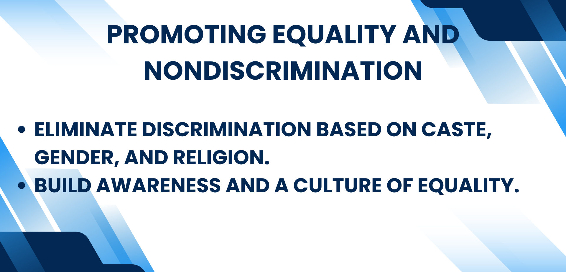 TRIF protects rights and promotes equality, dignity, integrity, and inclusion through legal support, public programs, healthcare/education access, and partnerships